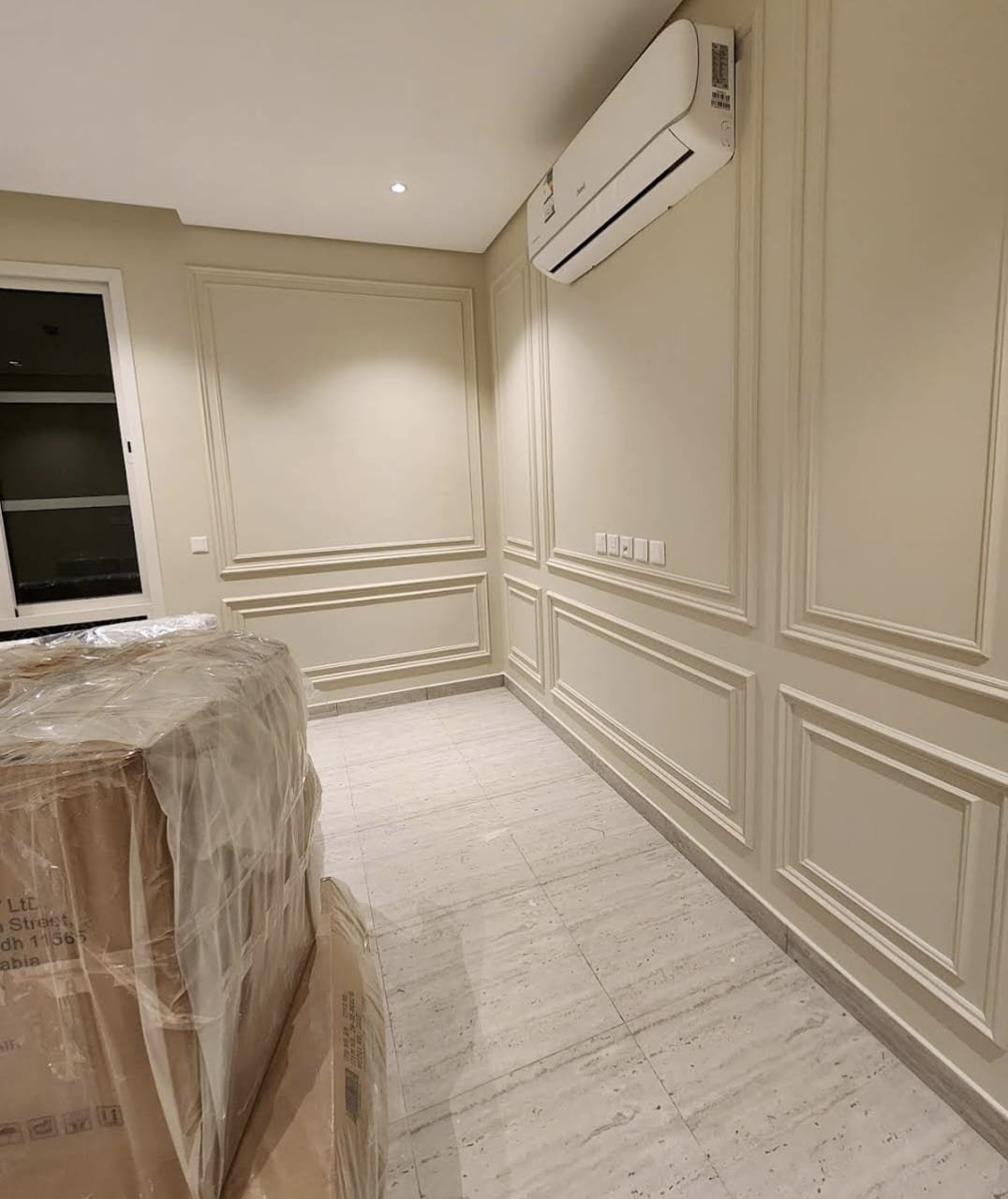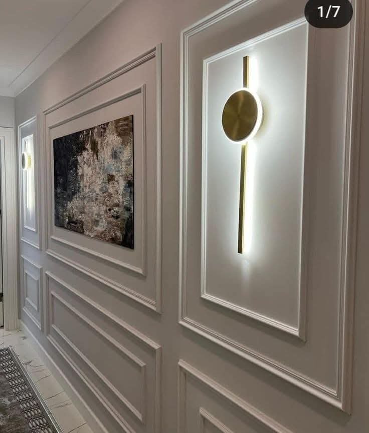 • الجدران يمكن أن تحتضن لوحات فنية، نقوش عربية، أو درابزين خشبي/معدني بتصميم معاصر يمزج بين الزخرفة البرّاقة والبساطة.